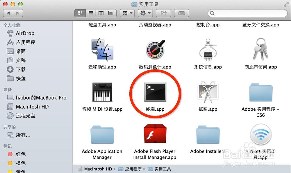 macbook苹果电脑系统使用“终端”远程登录linux主机登录mac系统后,依次打开顶部菜单,“前往” -> “应用程序” -> “实用工具” -> “终端”,如下图: