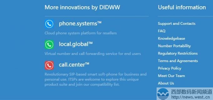 就在官网的左下角可以看到,DIDWW上线了三个创新项目phone.systems、local.global和call.center。其中,phone.systems主要为分销商提供云电话系统平台,就业务内容来看,域名phone.systems与之非常贴合,既独特个性又简单好记。local.global则是为全球终端用户提供电话和虚拟电话服务的平台,选择local.global为域名,也与业务内容很契合。而域名call.center则主要用于新开发的电话软件,企业用户和个人用户均可适用。 目前以三个新顶级域名搭建的新网站均已上线。外媒认为,这三个域名的选择都很有特点,能够很好的契合旗下业务平台。尽管新顶级域名发展尚不如.com等域名成熟,但随着终端应用案例已经层出不穷,新顶级域名未来潜力必定不可限量。 本文转载自新闻资讯,原文链接:全球DID电话服务商启用3个新顶级域名上线新平台