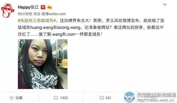微博晒图,凤姐收购“黄网”、“思聪”域名 凤姐在微博上称,自己收购的单拼域名huang.wang将用来做一个比较吸睛的网站。虽然目前什么网站并未透露,但从域名huang.wang的品相含义上来说,绝对堪称精品。前缀huang有“黄、谎、凰”等含义,组合在一起huang.wang有“黄网、谎网、凰网”之意,适合搭建电商、游戏等网站。 双拼域名sicong.wang对应大家熟知的国民老公“王思聪”,这类域名因为对应名人,指向性很明确,适合搭建个人网站或者粉丝俱乐部平台。凤姐收购这个域名的意图不言而喻,而且也在微博上公开喊话:屯在手中,坐等王思聪收购。 进军新顶级域名,凤姐也玩跨界了? 凤姐,原名罗玉凤,因一系列雷人言论在网络上走红,被人称为“凤姐”,算是网红界的鼻祖了。此前,凤姐曾宣称要进军自媒体,还因一篇《我是罗玉凤》的微信文章刷爆朋友圈。现在,凤姐突然又要进军域名圈了吗? 凤姐在微博上称,自己很少上国内的网站,因为域名记不住,体验又差。看起来,凤姐这回收购新顶级域名是看准了目前像huang.wang这样的拼音域名在国内有着记忆上的优势。虽然还是域名圈的新人,但不得不说凤姐选新顶级域名的眼光颇为独到,不管是huang.wang还是sicong.wang都是极有分量的域名,一个有突出的建站应用优势,一个有着名人效应,凤姐这跨界的第一步走得还不错。 建“黄网”喊话“王思聪”!大V们也不淡定 凤姐微博晒图后,大V们都沸腾了。有人说凤姐要用huang.wang搭建成人网站“黄网”,也有人说凤姐要建的是“凰网”,与“凤”字组合“凤凰”,但与“思聪”组合又是什么意思呢?对此,各路大V们众说纷纭,看呆了我等吃瓜群众。 知名搞笑幽默博主@Happy张江发文说:这回跨界有点大!刚刚,罗玉凤在微博宣布,她收购了顶级域名huang.wang和sicong.wang,还准备做网站?看这网址的拼音,脸都忍不住红了……据了解.wang和.com一样都是域名!