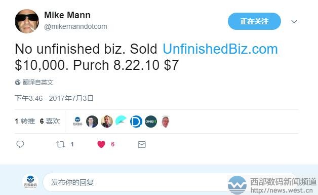 “没完成的生意”也这么值钱!7美元注册的长域名卖出68000元!三五互联(35.com)7月4日消息,几乎所有的米友都希望自己名下的域名能够低买高卖,最好像海外大佬Mike Mann一样,拥有高超的销售能力。说到Mike Mann,近期他又以10000美元(约合人民币68000元)的价格出手了组合域名Unfinishedbiz.com,而这枚域名当年的注册成本才7美元!