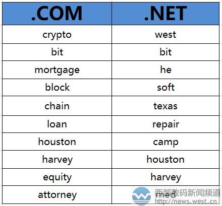 .com域名方面,单词“crypto”(秘密的,加密的)排在第一。这个词因与加密货币密切相关,今年以来曾多次成为十大热门关键词。据悉,就在5月和6月,“crypto”还分别登顶.com和.net域名热门词汇榜榜首。 接着是bit,代表有“比特”的意思,对应当前火得一塌糊涂的比特币市场。今年以来,比特币市场疯狂发展,相关域名的行情也随之暴涨。不仅有多个“比特币”域名高价交易,也催生了大批用户疯狂抢注。 除此以外,区块链的走红也让相关词汇成了香饽饽。像block(块)、chain(链)等词均是8月份相当热门的注册词。另外,两个金融类词汇“mortgage”(抵押)以及“loan”(贷款)也再次上榜,根据以往的热门词榜单来看,这两个单词应该是.com和.net域名的长期热门词汇,很适合搭建相关金融平台。 .net域名方面,8月份的最热词汇是west,是“西部,西边”的意思。紧随其后的仍然是“比特”单词bit,这说明不管是.com还是.net域名,热门行业始终牵绊着域名注册者的神经。 随后,人称代词“he”(他)排在第二,也可作单拼,有“和”的意思,这个词可与多个领域多个词搭配,可应用的空间很大。另外,因受飓风袭击而遭受巨大影响的美国城市休斯顿“houston”也成为了8月份热门注册词。 本文转载自新闻资讯,原文链接:威瑞信8月报:加密“crypto”又成最热关键词!“休斯顿”城市也榜上有名