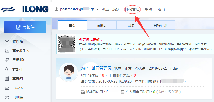企业邮箱如何创建部门和用户1、使用postmaster账户登录云邮web管理平台,点击“邮局管理”。