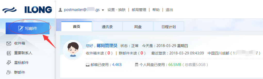 1、登录全球云邮,点击“写邮件”。