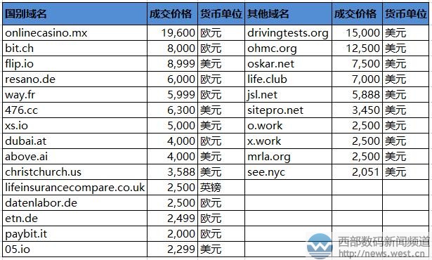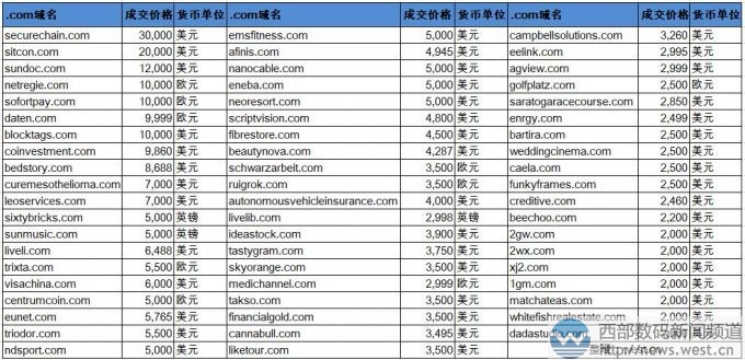 除此以外,.com域名方面成交价在五位数美元以上的还有netregie.com(潜在终端有IT公司Netregie)、softotpay.com(软支付)、daten.com、blocktags.com(块标记符)。