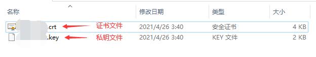 4.解压后会得到两个文件,.crt的是证书文件,.key的是私钥文件。