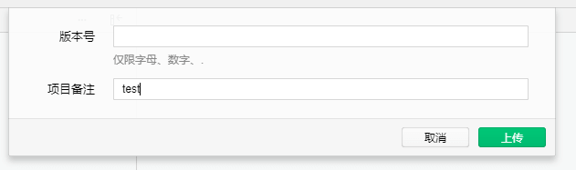 上传代码包时,需要填写版本和项目备注,版本号可以根据实际需要填写,建议与平台版本号同步,项目备注可以填写修改内容