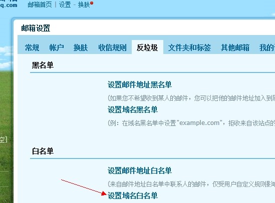 为什么无法收取到三五互联验证邮件或优惠通知可能是您的邮局服务商有当成广告邮件,请按照下面的方法将我司的域名加到域名白名单里面 1.登录QQ邮箱后点设置
