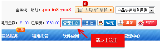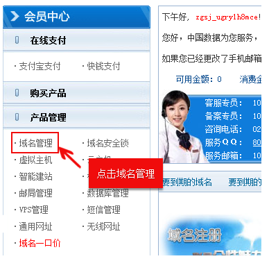 2.进入管理中心,点击左侧导航栏-产品管理中的【域名管理】