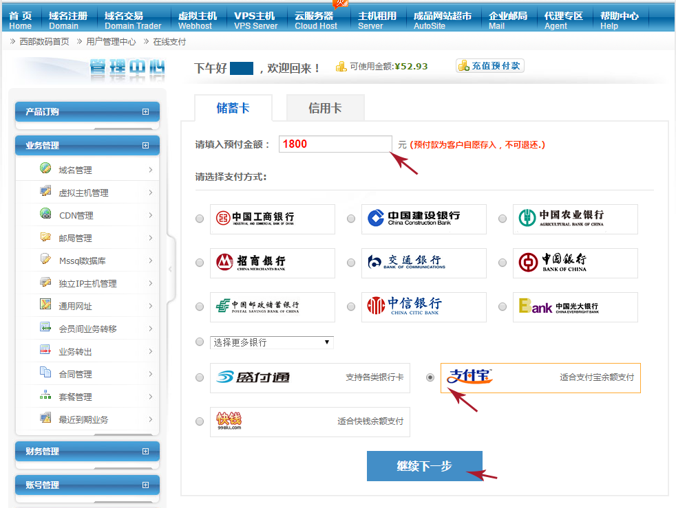 如何使用信用卡完成在线支付?由于银行方面为了确保用户资金安全,限制了第三方在线支付公司单用户每月使用信用卡支付的额度,不同的在线支付接口所限制的信用卡额度各有不同,支付宝接口信用卡支付单笔限额2000元。直接使用银行通道大多数限制单笔为500元。 目前我们默认推荐的“京东支付”采用京东的接口,支持的单笔限额较为宽松,推荐使用!