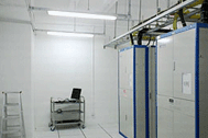 采用大型中央空调恒温、恒湿机房专用空调上送风结构设计,冗余设计7×24的上送风侧回风系统,高可靠性、安全性,一期安装6台, 制冷量相当于24台5匹空调。二期安装四台阿尔西中央空调机组。